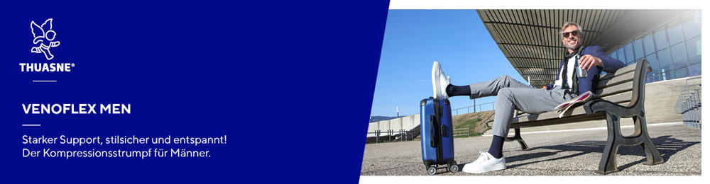 Kompressionsstrümpfe sind auch eine Wohltat für gesunde Venen. Der Kompressionsdruck nimmt vom Fußknöchel in Richtung Knie mit einem fest definierten Verlauf ab. Das dabei entstehende belebende Gefühl tut nicht nur bei langem Stehen oder Sitzen gut, sondern schenkt den Beinen auch mehr Leichtigkeit. Sogar auf Reisen mit Bus, Bahn, Auto oder Flugzeug leisten Kompressionsstrümpfe ihren Beitrag. Das lange Sitzen führt nämlich oft dazu, dass die Beine schwer werden oder sogar anschwellen. Außerdem können Kompressionsstrümpfe das Risiko einer Reisethrombose verhindern. Mit Kompressionsstrümpfen für gesunde Venen hat man so immer das Gefühl, etwas für die Gesundheit zu tun.